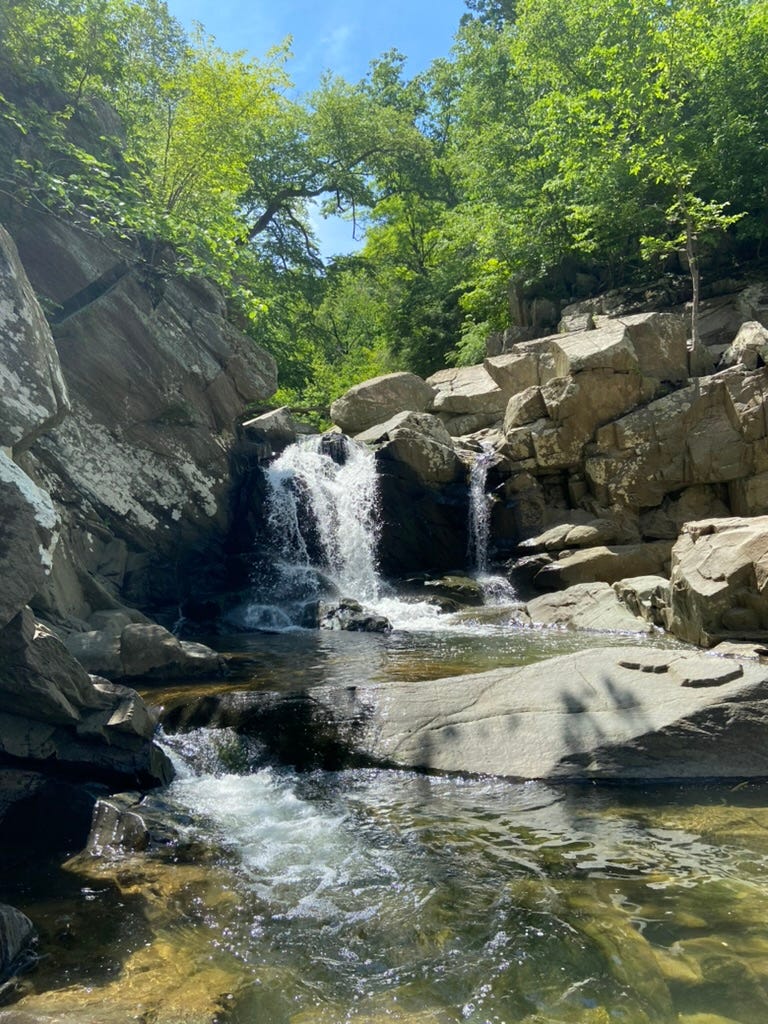 I walk and I walk. Farther away from the sound of cars. Deeper into the crest, where the crunch of gravel grit meets my shoes and there, in the distance! babbling sounds of running freshwater.